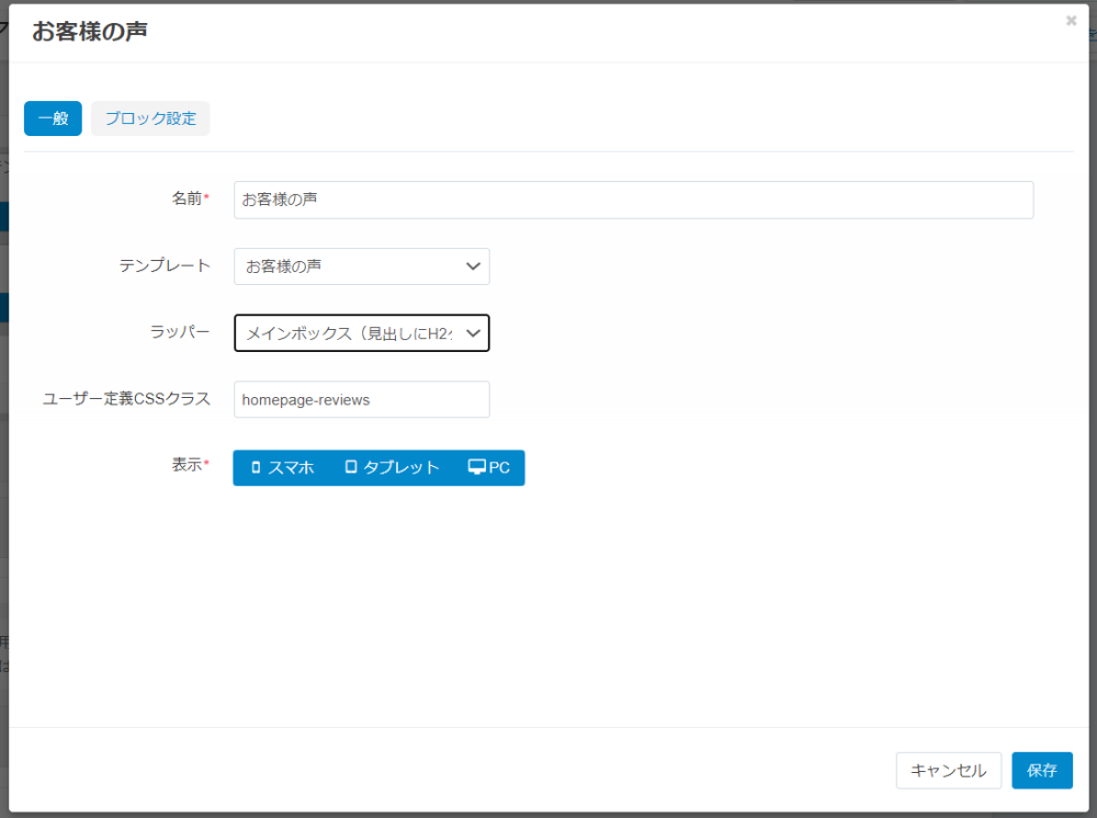 デザイン → レイアウト から「お客様の声」ブロックを設定することで、モールの好きな位置に投稿されたコメントを表示できます。