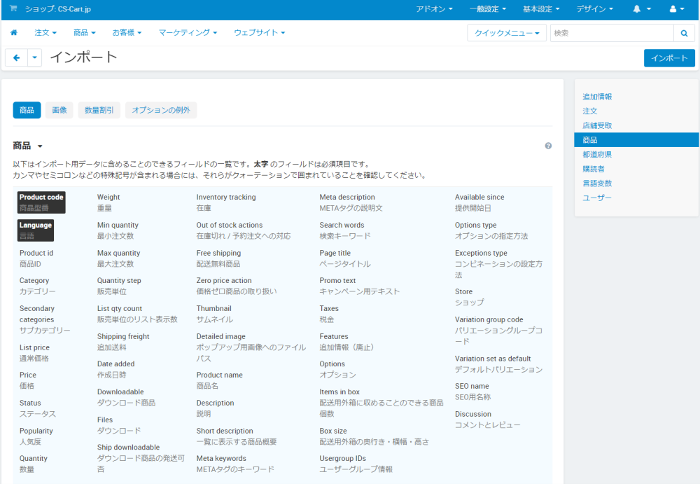 CSVファイルを介してCS-Cartモール版にデータをインポートすることができます。