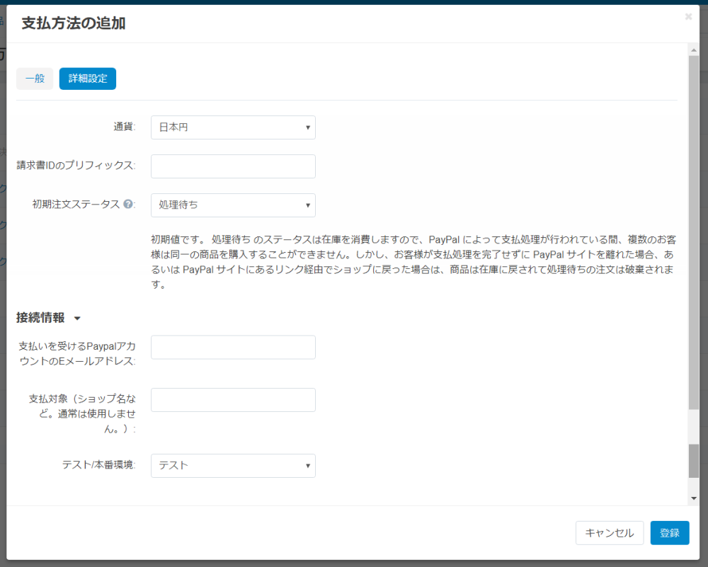 <決済代行業者>に【Paypal】、【Paypal Advanced】のいずれかを選択します。