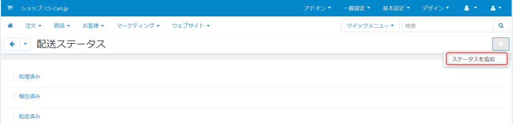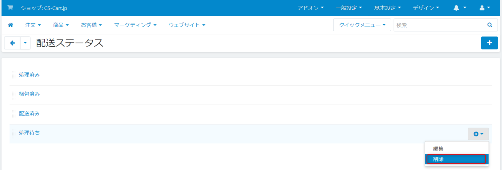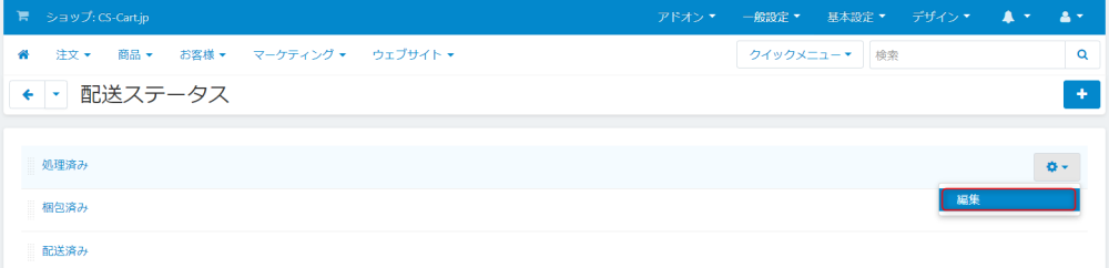 配送ステータス名のリンク、あるいは配送ステータス上のトグルメニューから編集ができます。