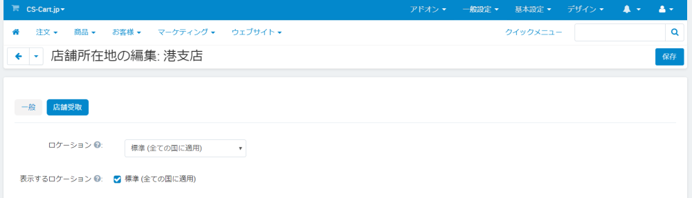 「店舗受取」タブにおいて必ずロケーションを選択してください。このロケーションに基づき送料を設定します。