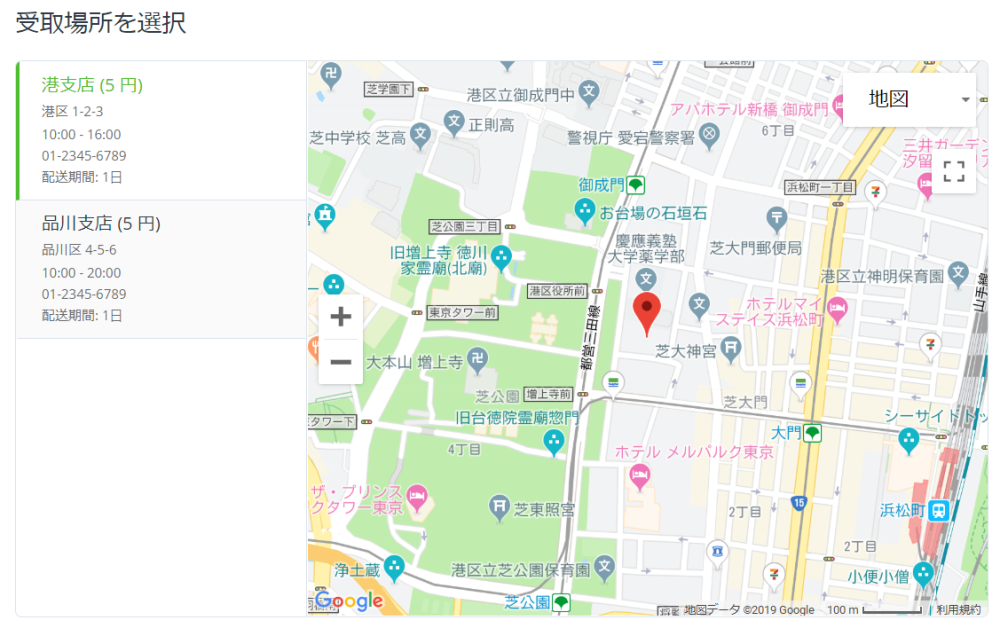 2. 店舗受取の配送方法を作成し、受取店舗を選択できるようにします。